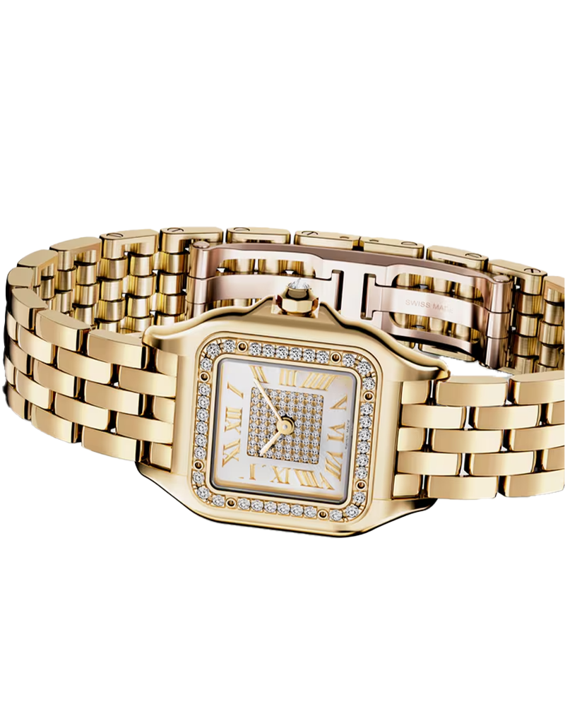 Designed in the 1980s, the Panthère de Cartier watch takes its name from the bracelet of the same name. Its ultra-flexible structure echoes the movements of the Maison’s emblematic animal. Both a watch and a piece of jewelry, it is a veritable fashion icon for women with bold style.