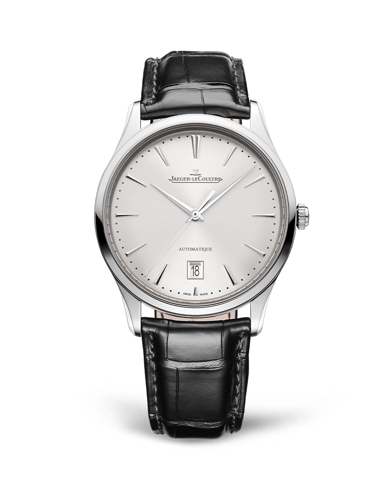 Master Ultra Thin Date With its timeless yet modern style, the Master Ultra Thin Date watch in stainless steel features subtle changes made by the Jaeger-LeCoultre watchmakers in their constant pursuit of excellence. The first details to catch the eye can be found on its dial. On a sunrayed silver background, the hour-markers have been reworked with increased length and finesse. Like a signature, the date that gives its name to this timepiece is distinguished by its new aperture at 6 o'clock. A great classic for connoisseurs of refined and discreet objects.